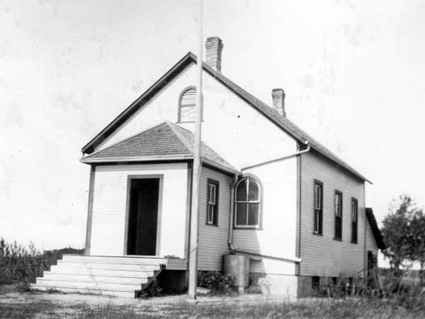 The Oakland School District was established in September 1878 and a schoolhouse was constructed at SE34-13-7W in later became the Rural Municipality of Portage la Prairie, on land donated by farmer Thomas Metcalfe. The donation was apparently verbal because Metcalfe later sold the land to Lewis Eadie, necessitating the school trustees to purchase an acre of land from Eadie in 1900. The school building burned down in the fall of 1900 so classes were moved to the school barn until a replacement structure could be built, in 1901. This building was used until 1948 when it closed for lack of students, reopening again in 1953. It closed permanently in June 1968 and remaining elementary students were bused for a time to Euclid School, later going to Portage la Prairie after it closed. The former school building was purchased by a local farmer, moved across the road from its original site, and converted into a workshop.