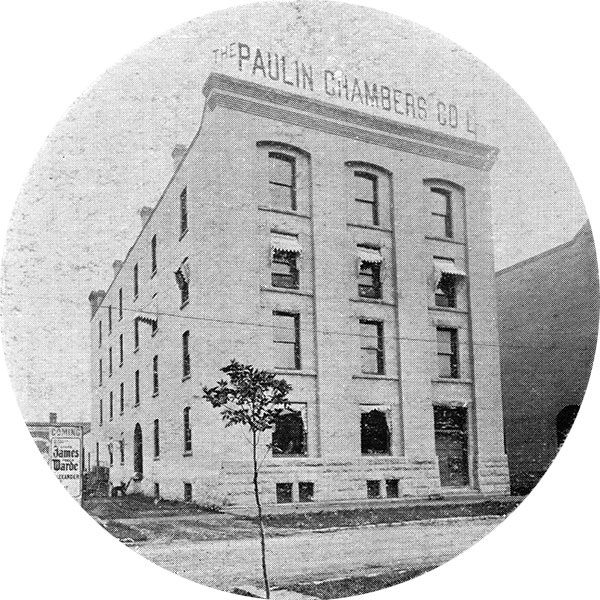 This six-storey brick building on Ross Avenue in Winnipeg was built in two parts for the confectionary firm of Paulin-Chambers. The earliest part dates from 1899, when a three-storey frame building constructed in 1882 was moved onto a new stone foundation along with a new four-storey brick and stone structure designed by architect James Henry Cadham and built by John Alexander Girvin and Philip Burnett.