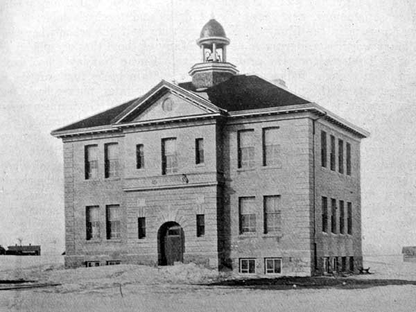 The Pilot Mound School building erected in 1905 and demolished in 1959 (circa 1906)