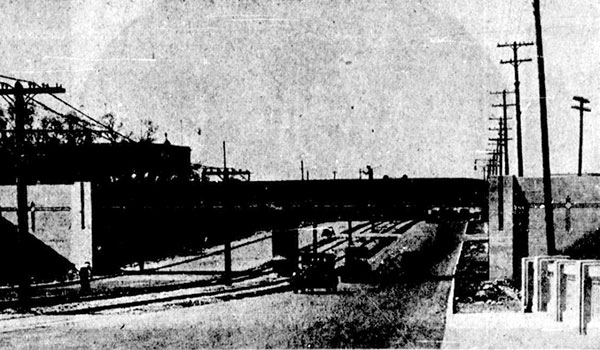 A subway at Portage Avenue over Omand’s Creek in Winnipeg, consisting of a single-span concrete and steel railway bridge measuring 14 feet wide by 100 feet long, and a concrete and steel roadway bridge measuring 90 feet long by 110 feet wide, was built between 1936 and 1937 by the firms of Macaw and Macdonald and the Dominion Bridge Company at a total cost of about $99,130.14. It opened officially in May 1937.