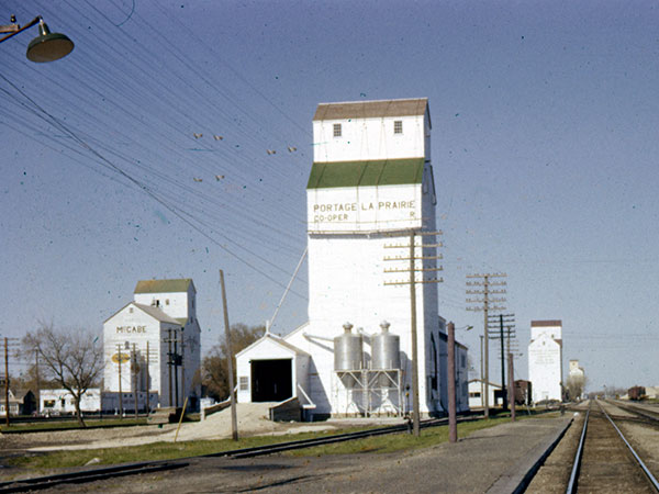 A 55,000-bushel wooden grain elevator at Portage la Prairie, on the CNR Gladstone Subdivision, was built in 1938 by McCabe Grain. A crib annex built beside it in 1951 increased its capacity to 130,000 bushels. By 1968, it held 158,800 bushels. Sold to United Grain Growers in March 1968, it was closed around 1994 and later removed from the site.