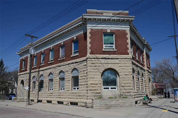 A later design changed the dimensions to 64 feet and 80 feet, respectively. The tender was awarded to the firm of J. McDiarmid & Company with a bid of $46,500. By the year’s end, the cost of the two-storey structure, including electrical work, heating, and fittings, came in around $55,000. The basement and main floor were finished in Tyndall stone, with pressed red bricks used for the second floor. The basement and main floor were to be used for postal operations, with offices of the superintendent and other officials also on the main floor.