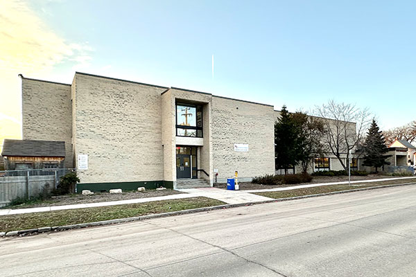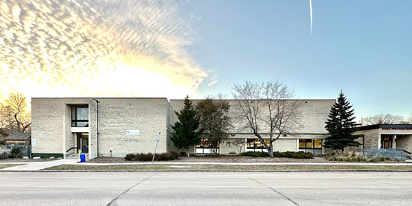 This primary school on Kenny Street in Winnipeg was designed by the architectural firm of Zunic and Sobkowich and was built between 1955 and 1956.