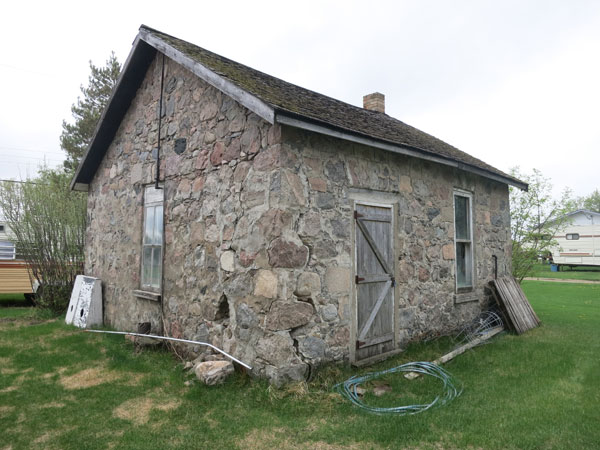 This stone building in Rapid City in the Rural Municipality of Oakview was formerly the office for a flour mill, established here in 1886 to use the adjacent river as a source of power. The mill closed in 1918 and was demolished in December 1920. The former office building, operated by the local historical museum, is showing significant structural deterioration.