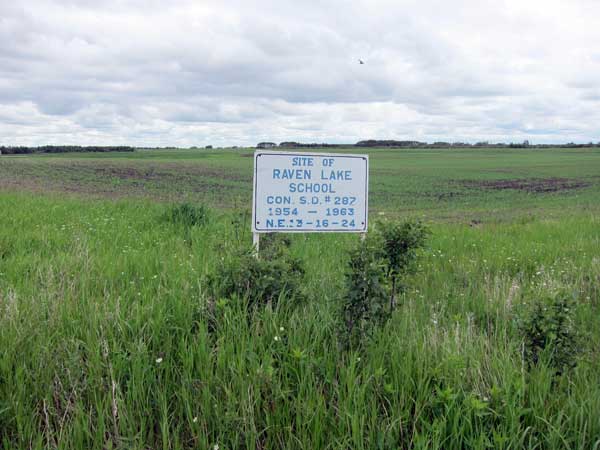 In 1954, when the Raven Lake School District became Raven Lake Consolidated School No. 287, combining Sylvester Hill School and Ethel School, it moved from its earlier location to occupy the former Ethel School building at NE13-16-24W and operated here until 1963. After the school closed, the remaining students went to Shoal Lake Consolidated School No. 2352. The building was sold and moved to Elm Street in the village of Shoal Lake, where it was renovated into a private residence. A sign at its site commemorates Raven Lake Consolidated School.