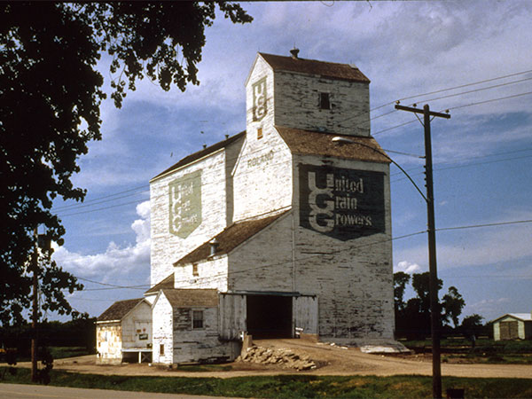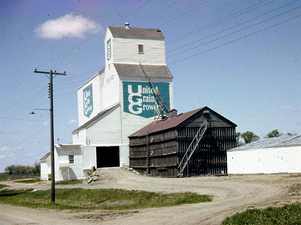 At one time, there were five grain elevators at Roland, on the CNR Miami Subdivision in the Rural Municipality of Roland. One belonging to United Grain Growers was built in 1938 replacing an earlier elevator destroyed by fire on 8 January 1938. A crib annex was built beside it in 1941. It was the last elevator in town when it was closed in August 2000 and demolished in July 2001. A commemorative sign stands nearby.