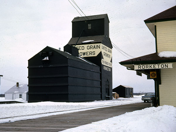 A wooden grain elevator at Rorketon, on the CNR Ste. Rose Subdivision in what is now the Rural Municipality of Lakeshore, was built in 1924 by United Grain Growers. The company cited increasing costs of operation and impending abandonment of the rail line from Ste. Rose du Lac when it closed the elevator in August 1980. It was later demolished and no vestige remains at the site.