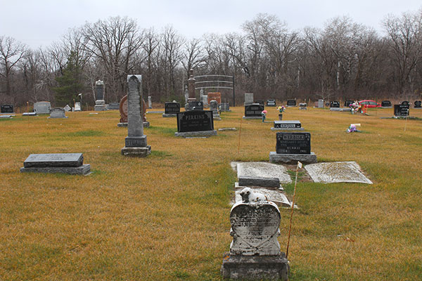 This cemetery in the Municipality of Norfolk Treherne was established in 1898 using one acre of land donated by Matthew Vennard (1854-1920). Subsequently, Andrew Aikens (1857-1921) donated an adjoining acre of land to make the cemetery larger. Every year the cemetery’s operating committee holds a service on the second Sunday of August.