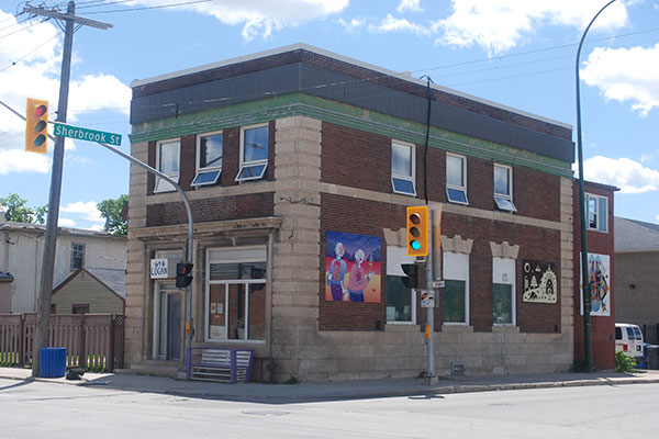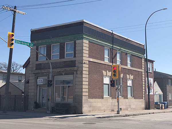 This two-storey brick building at the southeast corner of Logan Avenue and Sherbrook Street (formerly Nena Street) in Winnipeg, measuring 25 feet by 50 feet, was built in 1910 as a branch for the Union Bank of Canada. It was designed by local architects Lewis H. Jordan and Walter Percy Over and built by contractor William Horner at a cost of about $10,000.