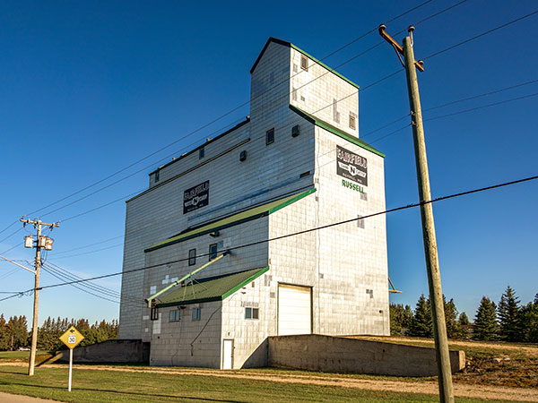 A wooden grain elevator in Russell, on the CNR Rossburn Subdivision in what is now the Municipality of Russell-Binscarth, was built by Manitoba Pool Elevators in late 1974 to replace an elevator destroyed by fire on 5 March 1974. It opened officially on 30 January 1975. Closed by Agricore in 2001 and sold to local interests, the off-track facility remains in use for private grain storage.