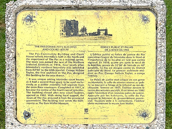 The Pas Community Building and Court House commemorative plaque (September 2023)