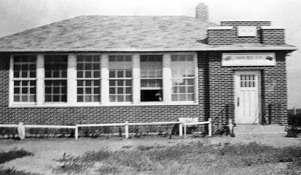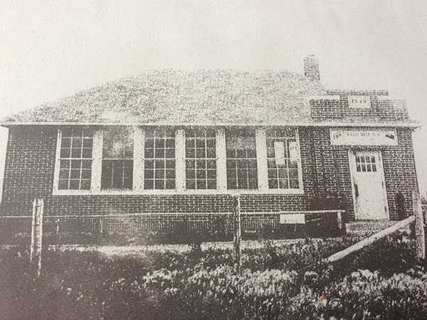 The Sandhill School District was established in March 1906 and a one-room schoolhouse operated at NW3-14-7E in the Rural Municipality of Brokenhead. The original building was destroyed by an accidental fire in late 1938 and a replacement was built in time for classes to resume in September 1939. The new school had a boys cloakroom, lobby and toilet room, girls lobby and toilet room. A large wood-burning furnace was located at the back of the classroom along with a library corner. A four-room teacherage on the school grounds was occupied by the teacher.