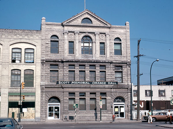 Designed by local architect James McDiarmid and built in 1902 by James Henry Neil, this impressive three-storey building in downtown Winnipeg was occupied by the Loyal Orange Lodge, a fraternal organization. The hall was named in commemoration of Thomas Scott, a protagonist of Louis Riel who was killed during the 1870 Red River Resistance. In 2017, it became a municipally-designated historic building. After sustaining unrepairable damage to its foundation in late 2019, the building was demolished in February 2020.