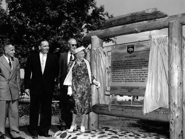 The construction of Seven Oaks House was commenced in 1851. The oak logs used for construction were hewn seven inches square and set one on the other, with the butt joints secured with wooden pegs. Construction was halted in 1852 by the devastating floodwaters of the Red River, which covered the property to a depth of four feet. On completion in 1853, an impressive two storey, nine-room house bordered the bank of the Red River.