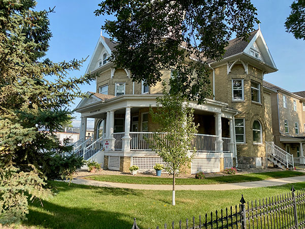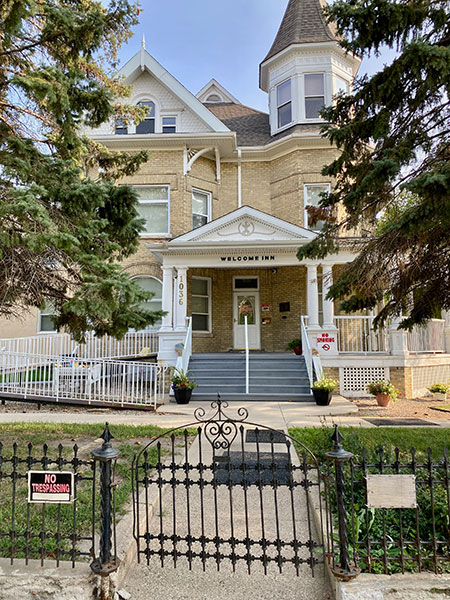A two-storey brick building at the southeast corner of Eleventh Street and Louise Avenue in Brandon was built as the residence for John E. Smith, a well-known local farmer and horse breeder. From the 1950s until 1984, it housed the Brandon Allied Art Centre. Since then it has served as a community group home, the Welcome Inn. It is on a Significant Buildings List pending evaluation by the Brandon Municipal Heritage Advisory Committee.