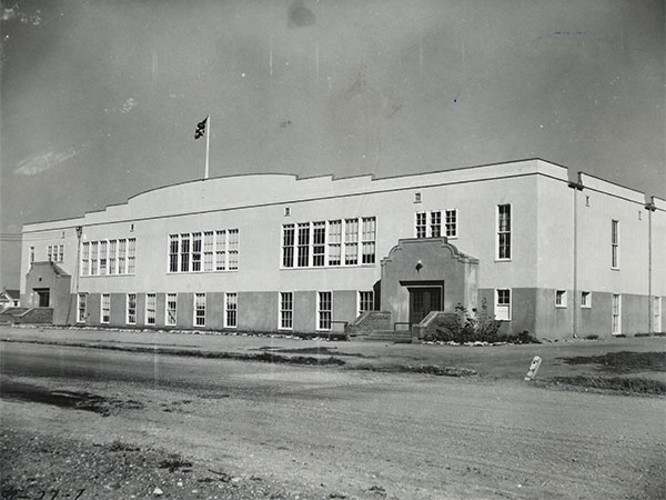 The six-classroom facility was opened officially on 5 November 1947. Present at the ceremony were School Board Chairman Jacob T. Loewen, Principal Peter Johan S. Guenther, Deputy Minister of Education Ronald Oliver MacFarlane, along with Reverends H. A. Brandt, P. D. Friesen, and Jacob Epp, of whom the latter two performed the school dedication.