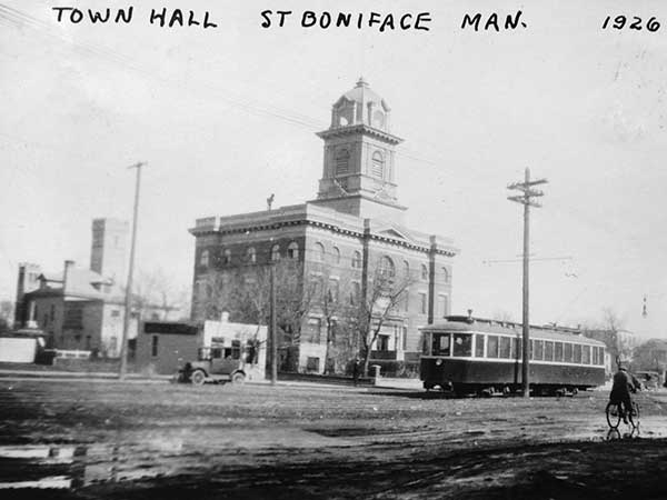 Designed for the Town of St. Boniface by architect Victor Horwood and completed in 1906 by the William Grace Company at a cost of $60,000, the main floor contained offices for the Secretary-Treasurer, Town Clerk, School Board, and Mayor. Council chambers were on the second floor, with residences for the Chief of Police and his assistant on the third floor. The court room and eleven jail cells (two for women, nine for men) were located in the basement.