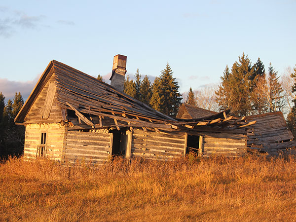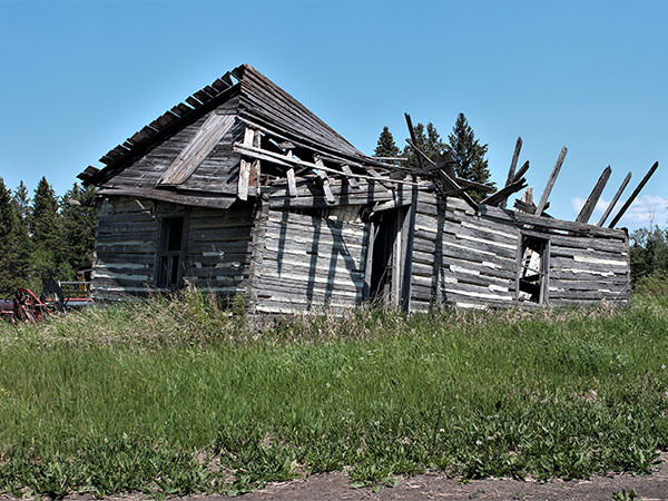 Due to the similar design characteristics, most early Ukrainian structures are easy to identify. Virtually all were one- or 1½-storey log structures, with southern orientation, a two- or three-bedroom rectangular plan, whitewashed, mud-plastered walls with a gable or hipped-gable roof of thatch. In Ukraine, regional variations in the basic design were quite prevalent, and as most of those who immigrated to Western Canada came from either one of two provinces – Galacia or Bukowinia – two regional styles dominated in Manitoba. The Galacian type, such as the one illustrated in the photograph, was smaller and more utilitarian than the Bukowinian. It invariably had two rooms, with the smaller “mala khata” on the west side serving as the main kitchen-work area, and the larger “velyka khata” reserved for special occasions, guests, and as the parents’ bedroom. Characteristically, the only entranceway opened onto the “mala khata” and the chimney was positioned on the kitchen side of the dividing wall. A straight gable roof was most common, with ceiling height eave projections on the ends, both features suggesting a German influence. Although thatched roofs were standard during the early years of settlement, by the 1920s they were replaced with roofs of wooden shingles which required less maintenance, and were less of a fire hazard, although they were not necessarily more efficient. A properly constructed and maintained thatched roof can shed water for up to 50 years or more. The Galacian-style house in the photo was constructed by Wasyl Stelmach and his wife in 1922, in the Riverton area. The timbers used in its construction were cut and shaped by hand, as the disappearing plaster reveals, the logs and dovetail joints were superbly fitted and are in as good physical condition today as the day they were cut over 50 years ago. The house is still habitable although son Joe Stelmach has recently moved into more comfortable quarters nearby.