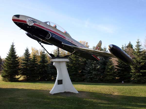 From 1967 to 2010, the aircraft wore pre-1967 RCAF silver-finish colours. In 2010, it was repainted in the Golden Centennaires aerobatics team colours. The restoration was funded by $100,000 from the City of Winnipeg, $50,000 from the Assiniboia Community Committee, and $30,000 from family of one of the pilots who flew with the Red Knights, Roderick William “Bill” Slaughter.