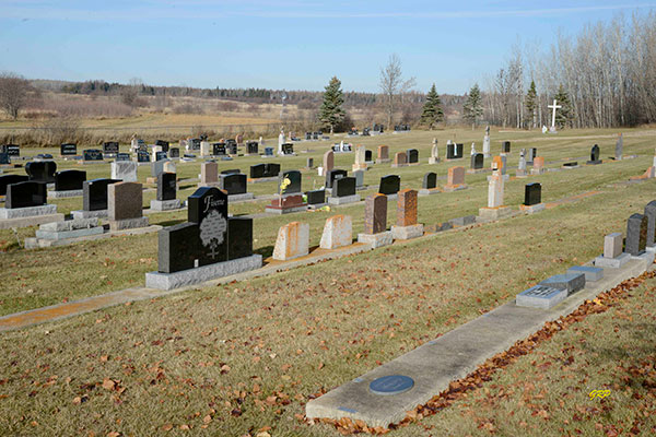This cemetery is located near St. Georges in the Rural Municipality of Alexander.