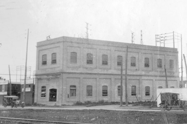 This two-storey brick building at the corner of Portage Avenue and St. James Street in Winnipeg was built by the Winnipeg Electric Railway Company in 1909 to serve as a local substation for its streetcar line between Winnipeg and St. James.