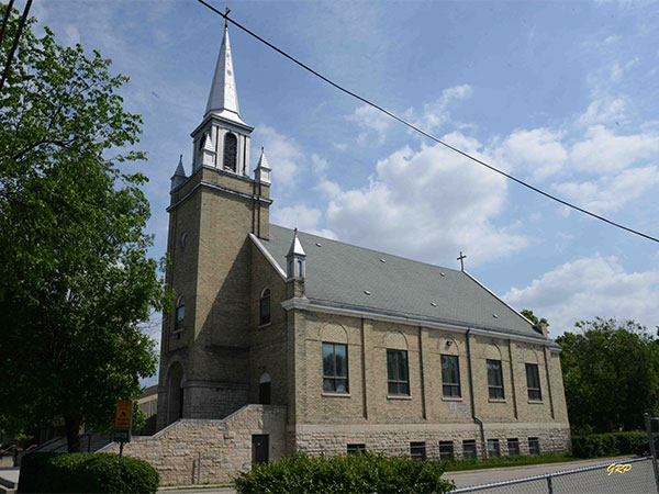 This 2½-storey brick and Tyndall stone church on Burrows in Winnipeg was built in two phases for the congregation of St. John Cantius Roman Catholic Church. The foundation and basement, measuring 45 feet by 75.6 feet, was built in 1918 by day labour at a cost of about $5,000. In 1925, a superstructure designed by the architectural firm of Northwood and Chivers was built by contractor Joseph Albert Tremblay at a cost of about $20,000.