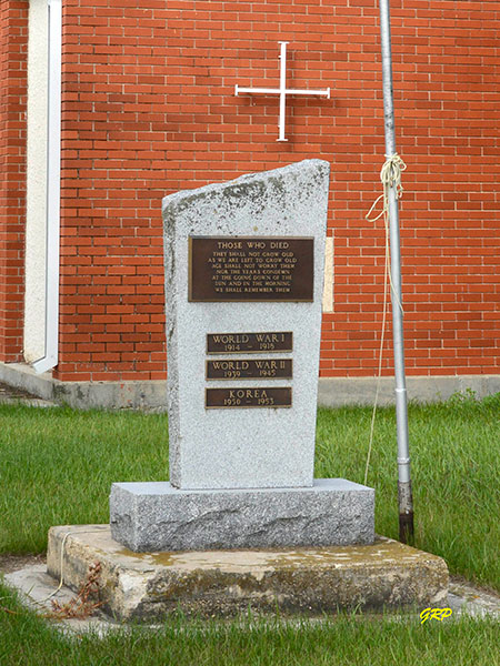 A church building, erected in 1963, replaced an earlier structure on the site. A bell in front of the church was cast in 1898. A monument commemorating those who died in the First World War, Second World War, and Korean War stands nearby. The St. Laurent Cemetery is situated behind the church.