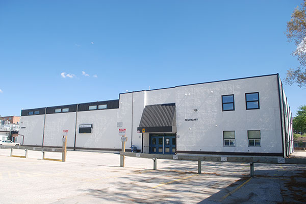 The school was re-opened in September 1979, receiving its incorporation on 4 September and official opening ceremonies on 23 September 1979 attended by Manitoba Senator Dufferin Roblin, who hoisted the school’s flag. The school then consisted of eight classrooms upon and hosted grades K-4. The building was expanded in 1980 (two classrooms), 1981 (gymnasium), 1983 (two classrooms), 1999 (six classrooms), and additional capacity in 2004-2005. A high school component was added in 1987, and the school now hosts grades K-12.