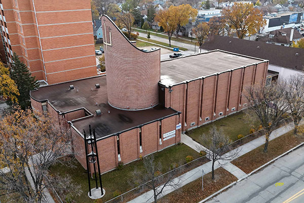 Aerial view of St. Michael’s Ukrainian Catholic Church at Winnipeg (October 2024)
