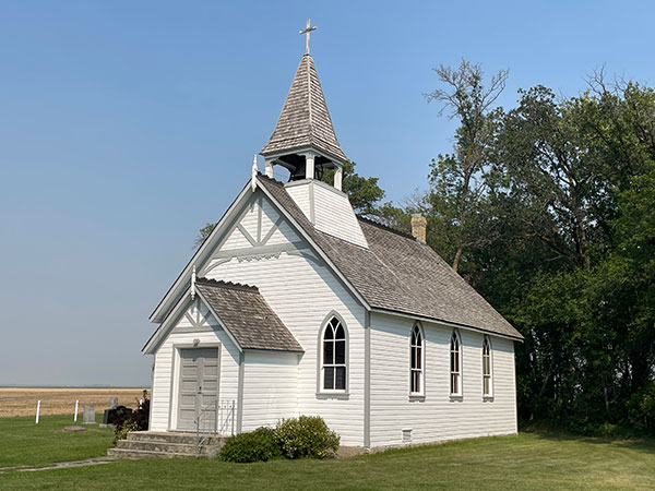 This Anglican church in the Rural Municipality of St. Francois Xavier was built in 1910 by Reverend Cartledge. The bell tower was restored in 1993 and the roof was re-shingled in 2002. It was designated as a municipal historic site (April 1994) and further renovations were done in the 2000s under the Manitoba Prairie Churches Project.