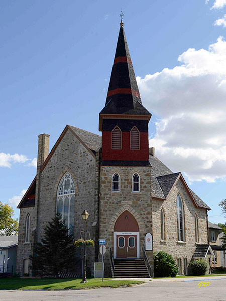 By the turn of the twentieth century, many of Manitoba’s small urban centres had grown into solid, prosperous communities. Their buildings reflected that change. Substantial Presbyterian and Methodist churches of brick and stone eventually came to replace earlier wood-frame structures. St. Paul’s United, originally Methodist, is a fine example of these large buildings. Built in 1893, it is one of the foremost representatives of fieldstone construction.