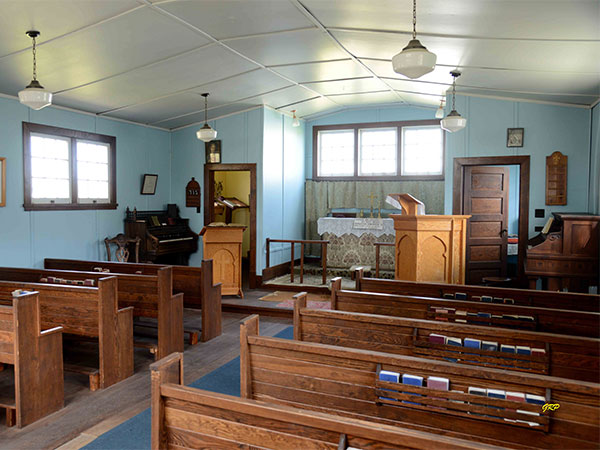 Interior of the former St. Peter’s Anglican Church from Kenville at the Swan Valley Museum (May 2019)