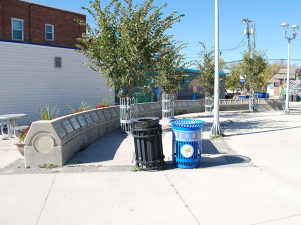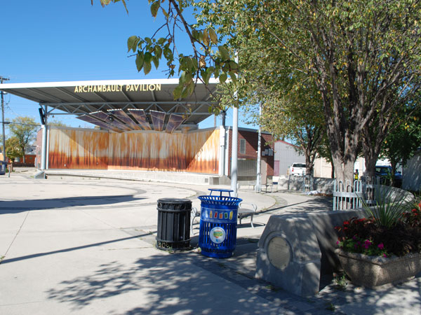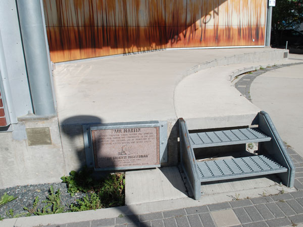Also on the square grounds are plaques commemorating Paul Emile Martin as “The Greatest Transconian” in 2005, affixed to the western side of the public stage, along with two concrete emplacements flanking the plaza to the east and west featuring individual nameplates of noteworthy residents of Transcona who have been inducted into the Transcona Wall of Fame.