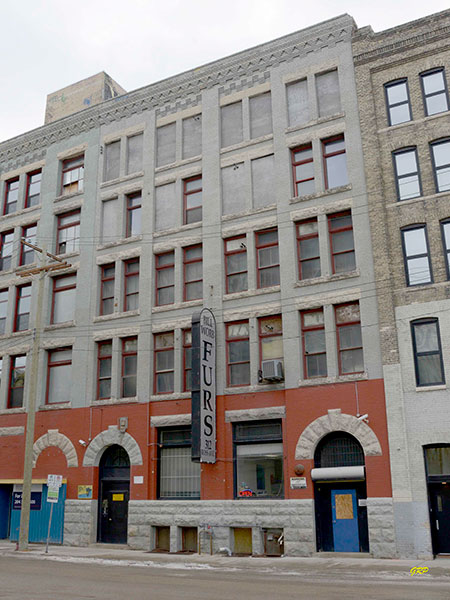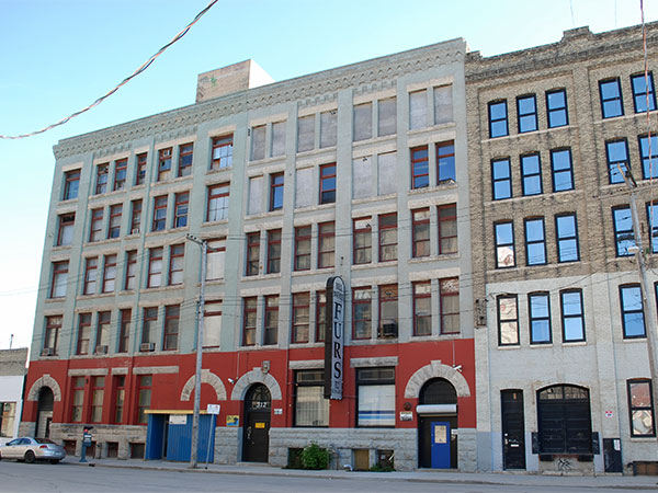 This five-storey brick and stone building on Ross Avenue in Winnipeg was constructed in 1905 by contractor Philip Burnett. Early occupants included leather goods merchants Arthur E. Spriggs and Samuel Trees.
