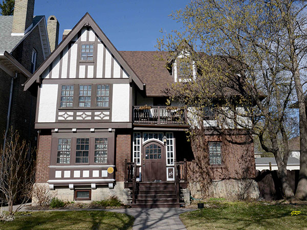 This two-storey brick house on Balmoral Street in Winnipeg was designed by architect John Nelson Semmens and built in 1911 by contractor H. Picken for businessman Thomas Alvin Van Vliet. His widow lived in the house until 1934 and continued to own it until 1949 when it was converted into a boarding house. It was owned and lived in by Michael and Julia Kirk in the 1970s and 1980s.