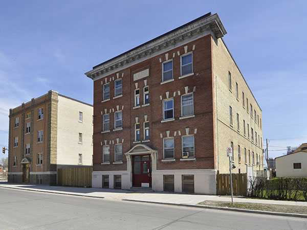 This three-storey brick and stone apartment block on Agnes Street in Winnipeg was designed and built in 1911 by contractor Asmundur Petur Johannson at a cost of about $50,000. The 90 foot by 40 foot building contained 20 apartments in its original configuration. It now contains 21.