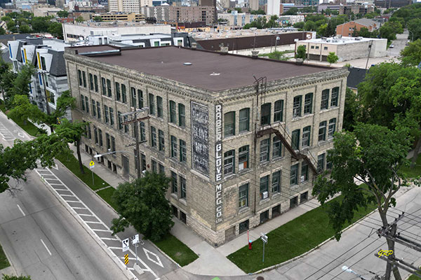 A three-storey brick building at the southeast corner of McDermot Avenue at Kate Street in Winnipeg, measuring 66 feet by 122 feet, was designed by local architect James Henry Cadham. It was constructed between late 1906 and early 1907 for the Western King Garment Company. Incorporated in October 1906 as a subsidiary of R. J. Whitla and Company, its purpose was to manufacture, buy, and sell all types of clothing. The initial directors of the company were merchants Dawson Kerr Elliott, R. Driscoll, Abraham Sugden Binns, John M. Campbell, Joseph Clark, James Harold Elliott, and lawyer Henry Walter Whitla. The name was later changed to the Western King Manufacturing Company.