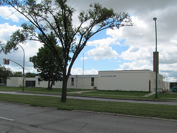 This one-storey school on Grant Avenue in Winnipeg was designed by architect William Isaac “Bill” Enns and constructed in 1955. Named for renowned Canadian physician William Osler (1849-1919), in 1957 the original ten classrooms and gymnasium were expanded to include four more classrooms. The school closed in June 1991 and the remaining students went to J. B. Mitchell School or Brock Corydon School. The building continued to be used for educational programs by the Winnipeg School Division. The school was officially reopened as a French-only facility on 4 October 2016.