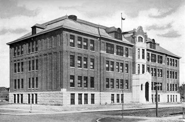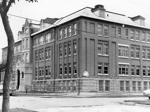 A three-storey brick and stone school building, measuring 78 feet by 146 feet, was designed by local architect James Bertram Mitchell and built in 1914 by the Claydon Brothers Construction Company on a parcel of land bounded by Manitoba and Magnus avenues, and Powers and Andrews streets. Commissioned by the Winnipeg School District, it was wonstructed at a cost of about $131,650, with the school’s name commemorating railway executive William Methven Whyte who had died earlier that year.