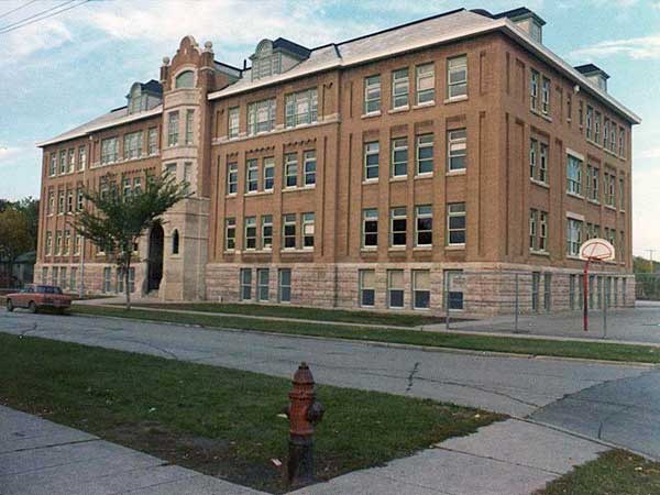 In 1976, a new school building was constructed on the site and a monument comprised of the former school's namestone and salvage bricks was erected along Powers Street.