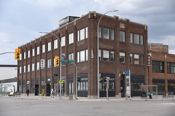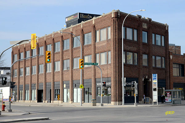 This three-storey brick building at the corner of Portage Avenue and Maryland Street in Winnipeg, measuring 50 feet by 175 feet, was designed by local architect John Danley Atchison and built in 1916 by the Sutherland Construction Company for the Willys-Overland Company, at a cost of about $60,000.