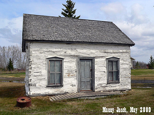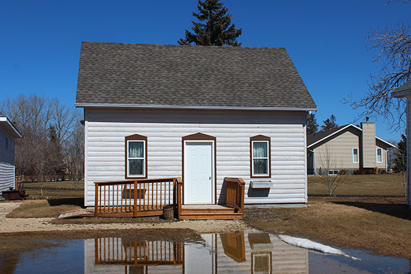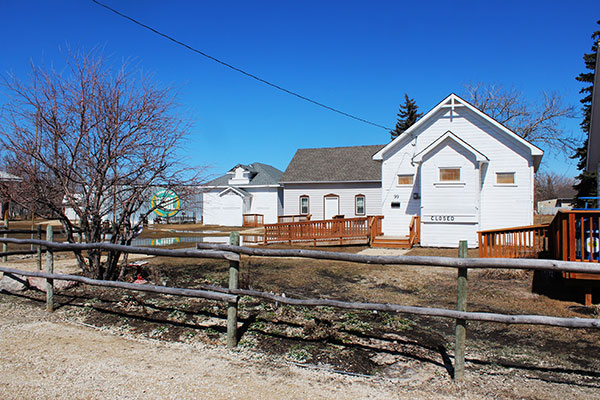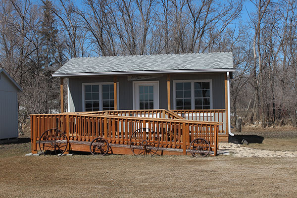 Graysfield School operated at SW27-15-3 west of the Principal Meridian, from October 1913 to April 1967. The building was moved to the museum in 1975. It houses a one-room classroom exhibit, a display of early clothing such as gowns, wedding dresses, and men’s apparel. There is a collection of antique clocks, radios, and buttons (including a button that is over 400 years old). This building also houses a small chapel with a headstone donated in 1996, describing the tragic night when four members of John Taylor’s family lost their lives.