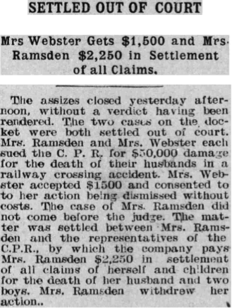 and 13th street crossings. The CPR negotiated a $2500 settlement with