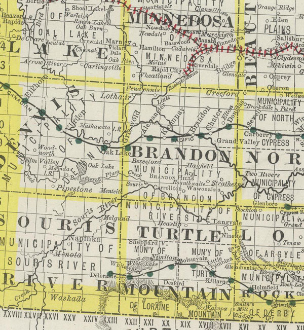 Pembina Mountain Railway, as their names imply, had Brandon as the