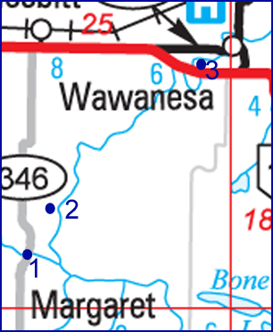 kilometres past the Log Cabin. Take the Margaret road (#346) south.