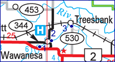 Wawanesa and Road #530 north from the highway.
