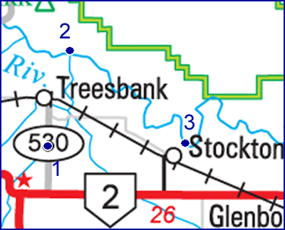 bridge spans the Souris near Treesbank. Take Highway #2 east from
