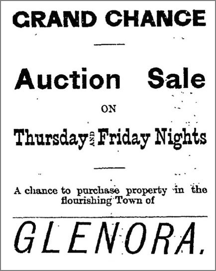 Glenora by the usual method of selling lots to speculators. The site,