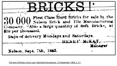 September 1883 advised that the Nelson Brick and Tile Manufacturing