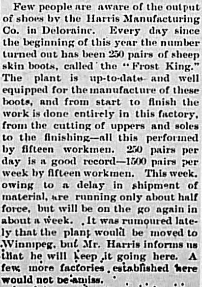 Earlier, in 1904 we learn that, “The Harris' Shoe Factory has been